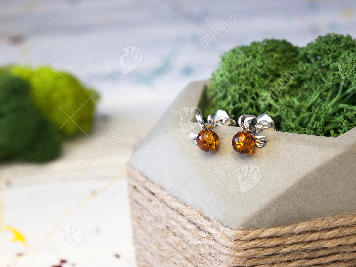 أقراط مرصعة بالعنبر “Bow”